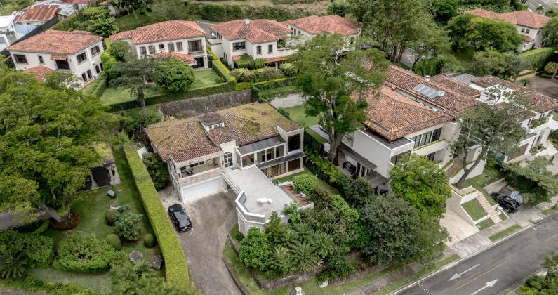 Located within the prestigious gated community of Cerro Alto, one of the most sought-after communities in Escazú, featuring high-end amenities such as a clubhouse, gym, swimming pools, sports courts, and 24/7 controlled access. This recently remodeled residence is the perfect fusion of timeless design, luxury finishes, and a privileged location offering unmatched privacy and security. It features four spacious en-suite bedrooms, each with walk-in closets and private bathrooms. One of the suites is conveniently located on the ground floor, perfect as a guest suite or secondary master. The primary suite offers two walk-in closets, including a stunning 35 sqm dressing room with panoramic city views. Premium finishes such as crema marfil marble, Travertino Oro, and coral stone, enhance every detail of the home. The social areas are thoughtfully designed for both family living and entertaining: TV room, covered balconies, a double panoramic terrace with non-slip Spanish porcelain, and a soundproof room, ideal for a private theater or studio. Outdoors, you’ll find a peaceful area with a pool, jacuzzi, outdoor shower, beautifully landscaped gardens, and a covered terrace. Upstairs, a second terrace is the perfect spot to enjoy breathtaking sunsets over the city. The property also includes a fully independent guest house with kitchen, bathroom, bedroom, and laundry, ideal for visitors or as a private office. With central air conditioning on the upper floor, abundant natural light, and a layout that balances elegance and comfort, this home is offered fully furnished and move-in ready. Schedule your private tour and experience the true essence of refined living in the heart of Escazú.