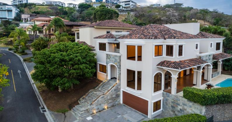 Indulge in opulent living at Villa Encanto, a luxurious residence in Escazu's Residencial Cerro Alto. With easy access to Route 27 and a range of amenities, this home offers the pinnacle of refined living. From upscale shopping and dining to schools, entertainment, and medical facilities, everything you need is within reach. This stunning house, originally built in 2011 and masterfully remodeled in August 2023, offers panoramic views and an expansive terrace with a private pool for hosting memorable moments. The three-story residence seamlessly blends modern comforts with classic allure. The first floor is perfect for entertaining, and the second floor features four bedrooms. Residencial Cerro Alto offers security and an elevated lifestyle with private clubhouses and scenic trails.